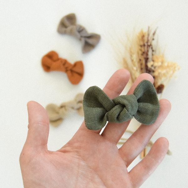 La barrette nœud en lin est l’accessoire idéal pour embellir les tenues de bébé. Que ce soit pour une journée ordinaire ou une occasion spéciale, cette barrette s’adapte à toutes les situations. Choisissez le support qui vous convient le mieux : barrette clic-clac, pince croco ou élastique.